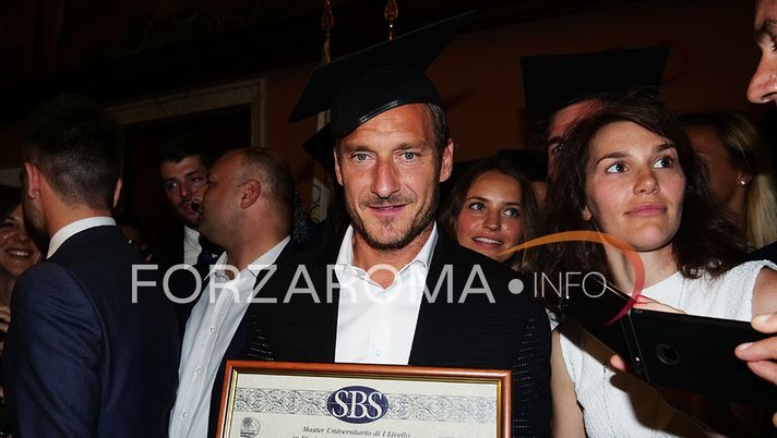 Ore 13.04 - Totti riceve il Diploma Honoris Causa e la maglia del Master SBS. "Mi sento un pesce fuor d'acqua, non centro niente qui in mezzo", scherza il capitano della Roma. "Ringrazio tutti quanti per questo bellissimo e inaspettato diploma. Lo sport ti gratifica, ti aiuta ad andare avanti nella vita, a conoscere persone nuove, obiettivi importanti. Ho realizzato il sogno che avevo da bambino. Avevo un idolo lontano e ci sono arrivato piano piano, con la famiglia, la determinazione e la fortuna. Con la voglia di costruire un futuro, e qui di futuri ce ne sono tantissimi qui. Non ho avuto la fortuna di fare questo master, non so se sarei riuscito a prenderlo (ride, ndr). Adesso però vorrei anche il cappello (tocco di laurea, ndr)!