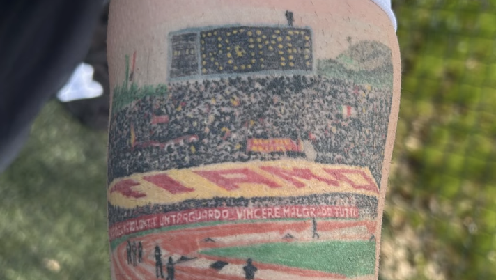 Tutti i settori dello stadio sono popolati da enormi bandiere giallorosse che...