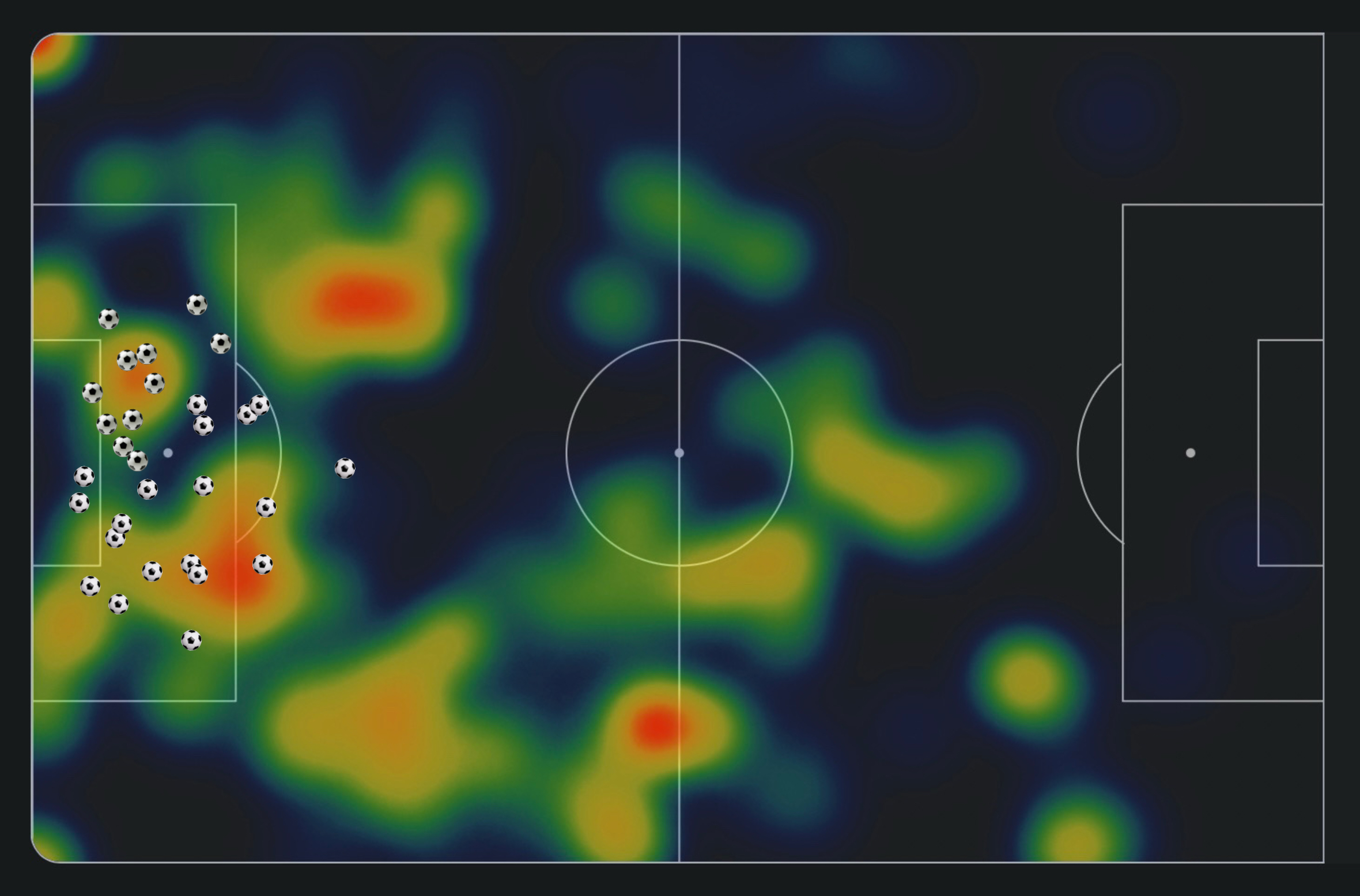 Anche la sua duttilità sarà sicuramente utile per Gasperini che a partita in corso può (s)cambiare spesso la posizione dei suoi attaccanti. Raspadori è abituato a giocare sulla trequarti e gli inserimenti in area sono probabilmente la sua arma migliore. Negli ultimi 5 anni, nonostante il piede preferito sia il destro, ha segnato più gol con il sinistro (15 su 28). Una statistica curiosa, ma che ci restituisce il profilo di un ragazzo che sa far male da ogni posizione e con entrambi i piedi. Questa la sua heatmap con l’Atletico e la posizione dei gol che ha segnato nelle ultime 5 stagioni: