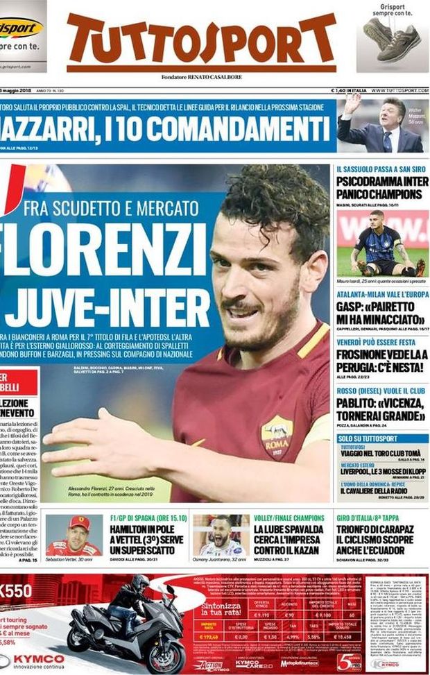 Tuttosport apre con il volto del vice-capitano giallorosso: alla chiamata di Spalletti che lo vorrebbe in nerazzurro, rispondono i suoi compagni di Nazionale che lo spingono a vestire la maglia bianconera