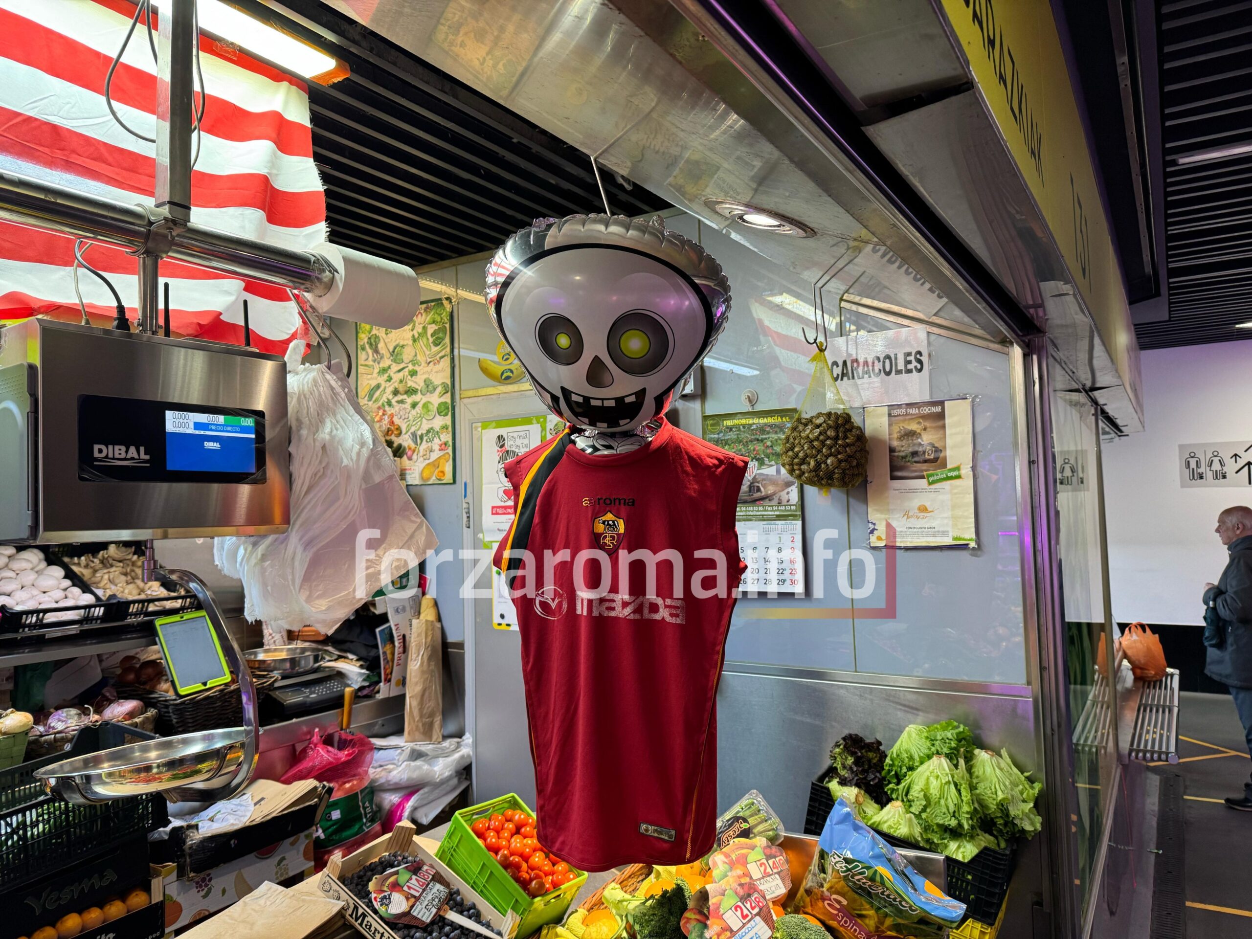 Bilbao si colora di bianco e rosso. In ogni via della città ci sono simboli dell’Athletic e bandiere. Anche le guide turistiche hanno la sciarpa dell’Athletic. Una curiosità nel mercato di Ribera ogni banco (pesce, carne e verdure) ha delle bandiere o delle foto della squadra ma basca, ma spunta anche un romanista. Un macellaio ha esposto la maglia di Totti:“È la mia perché amo Francesco. La Roma è seconda squadra, ma resta solo per oggi”. Di fronte il bancone di frutta e verdura ha risposto con un teschio con una divisa della Roma. A proposito di maglie: i giallorossi giocheranno con il kit blu per non confondersi con i colori dell’Athletic. Inizialmente era prevista la bianca.