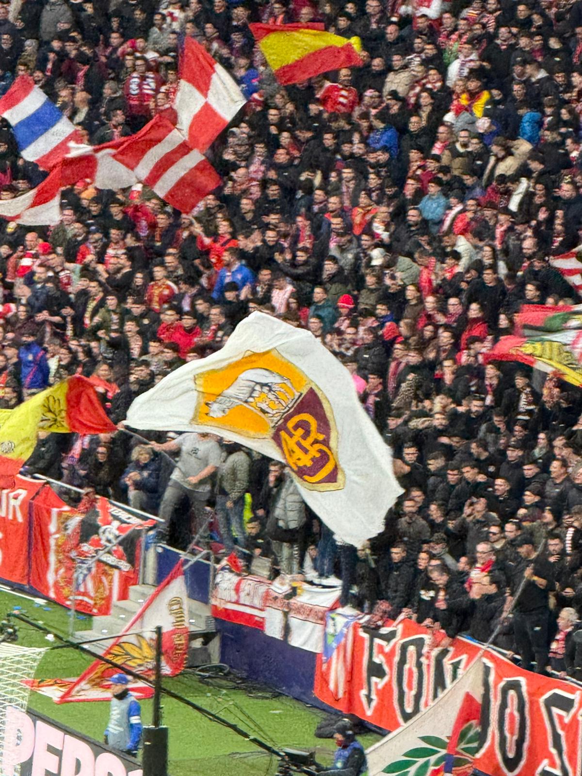 L'ormai tradizionale bandiera della Roma ha sventolato anche questa sera al Riyadh Air Metropolitano durante Atlético Madrid-Inter, confermando il legame tra le tifoserie. Nel settore caldo dei sostenitori rojiblancos, il vessillo giallorosso è apparso come simbolo di un gemellaggio ormai storico tra le due tifoserie, nato negli anni ’80. Un gemellaccio ormai consolidato, con la presenza dello stemma romanista diventata frequentissima.