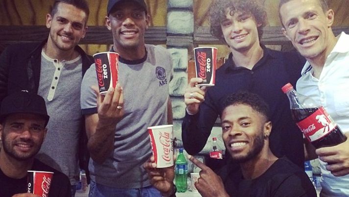 Bastos e i brasiliani della Roma posano tutti insieme con un bicchiere di Coca Cola (FOTO)