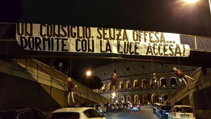 Manichini impiccati con la maglia della Roma davanti al Colosseo e uno striscione intimidatorio rivolto ai calciatori giallorossi, il tutto appeso sul ponte che sovrasta via degli Annibaldi. È questa la macabra scenografia che in piena notte viene allestita davanti all'Anfiteatro Flavio. Il clima a Trigoria è di quelli pesanti, tra situazioni spinose e risultati che latitano da qualche tempo con il derby perso a fare da punto più basso.