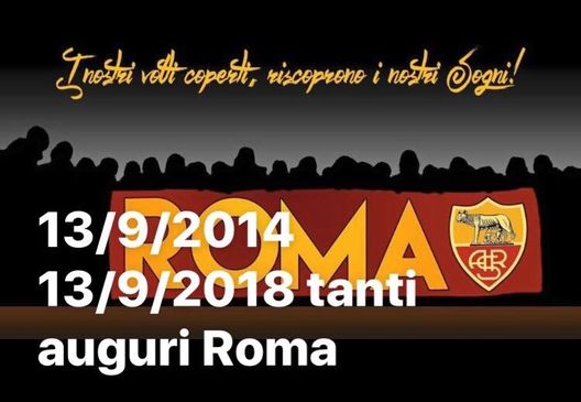 Dalla coreografia "Totti è la Roma", alle vittorie su barriere e palchetti per i lanciacori, col sostegno e l'amore continuo per una squadra, che rappresenta molto di più di quello che si possa immaginare. Il gruppo Roma compie oggi 4 anni e non ha intenzione di fermarsi. "Da Empoli Roma del 2014 la strada è stata tanta. Dalla vittoria sulle barriere, alle coreografie senza autorizzazioni, ad aver ottenuto i palchetti per i lanciacori. Ne passerà di acqua sotto i ponti ma nessuno può cancellare queste vittorie" scrivono i ragazzi del gruppo. E il bello deve ancora venire.