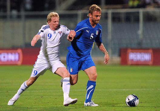 Quattro anni più tardi, nel 2010, De Rossi è impegnato con le Qualificazioni per gli Europei in Polonia ed Ucraina. Il 7 settembre di quell’anno l’Italia deve affrontare la modesta formazione delle Far Oer. L’avversario viene superato agevolmente con il risultato netto di 5-0 ed uno di questi gol porta la firma del centrocampista giallorosso. Un gol non casuale, è il numero 10 con la maglia azzurra. Con quella rete De Rossi supera mostri sacri della nazionale come Cabrini, Totti e Boninsegna, agganciando Zola. Quello del calciatore romano è il gol del 2-0. De Rossi diventa il calciatore romanista più prolifico in attività.