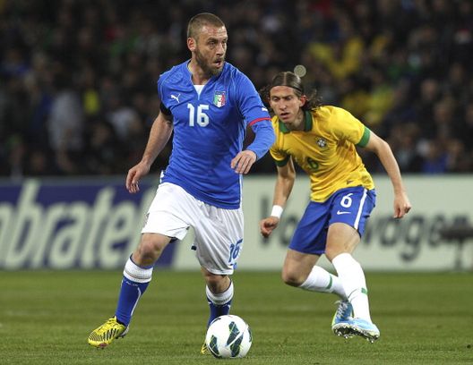 Il 21 marzo 2013 è una giornata importante per la carriera in nazionale di Daniele De Rossi. Si gioca Italia-Brasile allo Stade de Geneve. Il Brasile si porta sul punteggio di 2-0 nel primo tempo grazie a Fred e Oscar, che nel quarto d’ora finale inguaiano gli Azzurri, al tempo guidati da Cesare Prandelli. Nel secondo tempo parte la rimonta azzurra e da chi parte? Proprio da Daniele De Rossi. Con il suo 14esimo gol supera nella classifica all time dei capocannonieri Magnozzi e Pirlo, fino a quel giorno i centrocampisti più prolifici della storia dell’Italia dopo Baloncieri, fermo a 25 reti. Quest'ultimo giocava, però, negli anni '30. Altri tempi, altro calcio. Il numero 14 è un altro gol in mischia, simile alla rete all’esordio con la Norvegia, poco meno di 9 anni prima. Dopo soli 3’ minuti dal gol della speranza, ci pensa Mario Balotelli a mettere il conto in pari di fronte ai 28.000 tifosi accorsi per un match dal sapore storico nel quale di certo non sono mancate le emozioni.