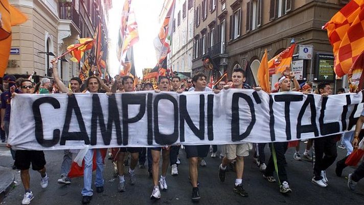 Convergendo verso il centro, tutte le consolari appaiono come un disegno giallorosso, composto da sciarpe e bandiere di ogni tipo. "Non vedevo l'ora" Dopo la "calma", ecco la tempesta, la liberazione. In stile imperiale, il popolo vuole, cerca, desidera gli dei del pallone: Piazza Venezia, Via dei Fori Imperiali, il Circo Massimo e intorno al Colosseo si vedono girotondi, si ascoltano cori e l'aria è quella dei Saturnali. La Roma moderna si fonde con quella di ieri: i generali di oggi si chiamano Totti, Batistuta e Montella, una vittoria simbolica su nemici ed avversari. Il gusto, poi, è doppio, con il tricolore scucito dalla maglia dei cugini: la grandezza dei festeggiamenti giallorossi offuscherà il brivido momentaneo dei laziali, come se lo richiedesse la città stessa, i colori del cuore si riappropriano di un trionfo atteso troppi anni. Ognuno ha un suo personale ricordo di quel giorno, le piccole soddisfazioni di una vita si riconoscono in aneddoti che descrivono tutto, anche dopo un decennio: bare dipinte con i colori biancocelesti, scudetti giganteschi corredati di forbici ed un'ironia d'altri tempi, ingredienti magici di un pomeriggio che sarebbe durato tre mesi. Il catino del Circo Massimo, qualche giorno dopo, rappresenta la sintesi della felicità romanista: Venditti canta, il popolo giallorosso ascolta. Un milione, forse di più, un’immagine indelebile nella memoria, qualcosa di straordinario che lascerà a bocca aperta anche i tifosi delle altre squadre. E’ la prova che Roma non è come le altre città: nessun problema, solo la voglia di far parte di una festa indimenticabile, di far vedere cosa vuol dire amare la Roma. L’estate scorre, tra ricordi e avvenimenti che provano ad ancorare l’ebbrezza dello scudetto, aspettando un’altra stagione nella speranza di un bis non troppo lontano.