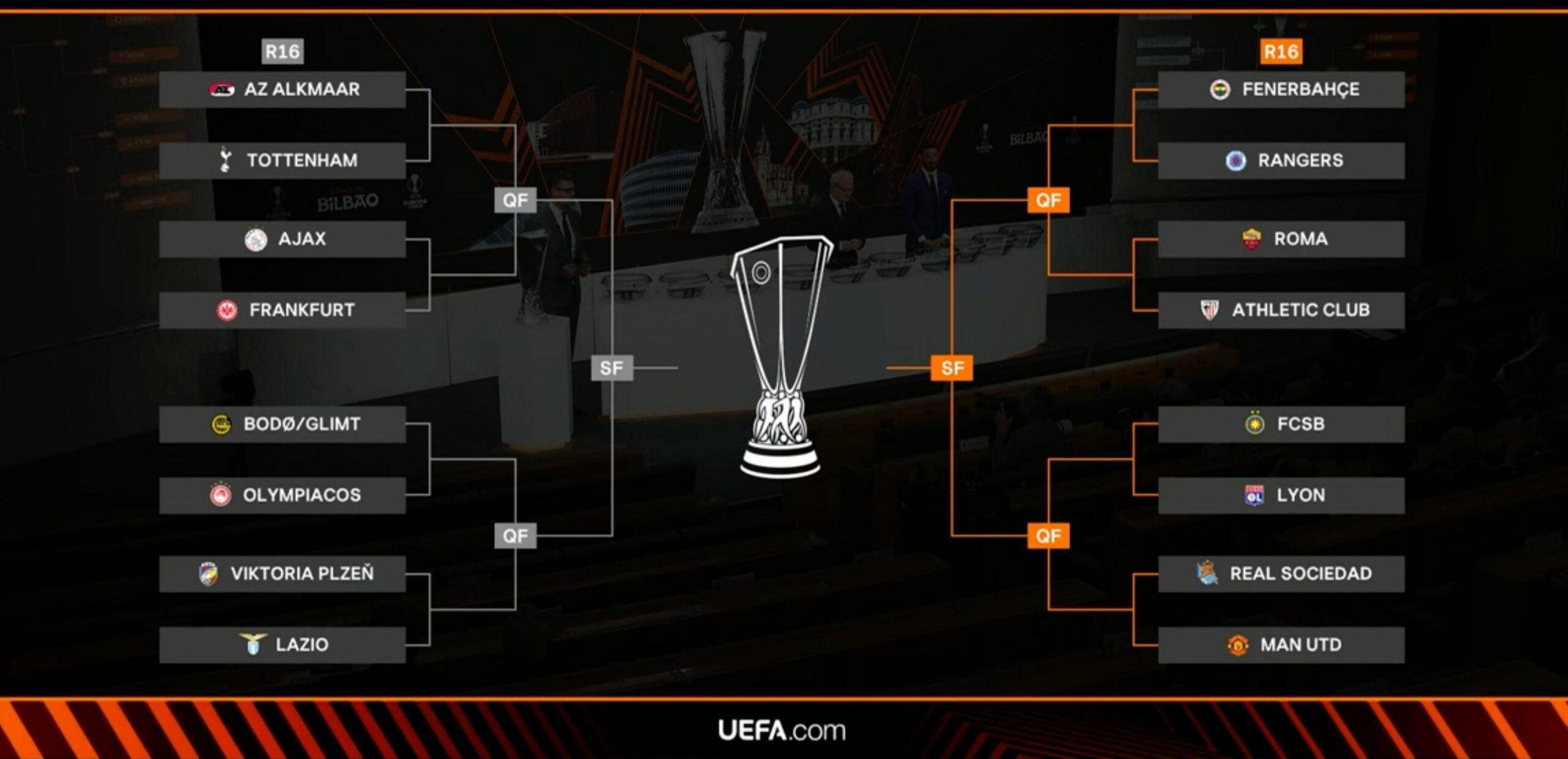 La Roma continua il viaggio in Europa League dopo il successo di ieri sera contro il Porto nei play-off. Oggi ha conosciuto l'avversaria degli ottavi di finale: l'Athletic Club. Evitato, dunque, il pericolo derby, con la Lazio che affronterà il Viktoria Plzen dal lato opposto del tabellone. La Roma giocherà l'andata in casa il 6 marzo, mentre il ritorno è in programma il 13 marzo al San Mamés di Bilbao. In caso di passaggio del turno, la squadra di Ranieri potrebbe affrontare il Fenerbahce di Mourinho (che prima dovrà battere i Rangers), disputando il ritorno in casa. In caso di ulteriore passaggio del turno, invece, la Roma giocherà la semifinale d'andata all'Olimpico.