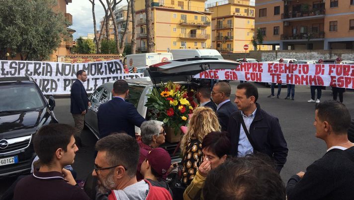 Funerali mamma Esperia, il saluto dei tifosi: “Vivrai per l’eternità”. Presente Nela – FOTO – VIDEO