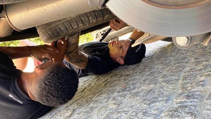 Ibanez e JJ meccanici improvvisati: “Cambio ruota in vacanza” – FOTO
