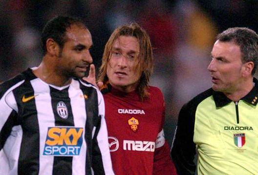 Otto marzo 2005 Roma-Juventus 1-2. Ancora Totti, che questa volta lancia pesanti accuse per niente velate: "Contro la Juve abbiamo fatto di tutto per vincere, ma era difficile in 11 contro 14. L'arbitro ha condizionato la partita. Se avesse ammonito qualcuno sarebbe cambiato tutto". Parole a caldo? Macché. Giorni dopo torna sulla partita: “Tutti hanno visto cosa è successo. Capello? Lo conosco bene, sapevo che non avrebbe parlato di Racalbuto nel dopo-partita. Se lo avesse fatto avrebbe negato l'evidenza. Ma nessuno può farlo, e anche in campo qualcuno della Juve se n'era accorto”.