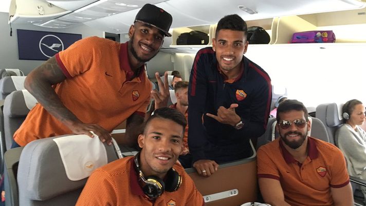 La Roma è partita per la tournée negli Stati Uniti ed i calciatori giallorossi tramite i propri profili ufficiali sui social network pubblicano alcuni selfie con i compagni di squadra.