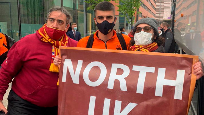 Così come ad Amsterdam, c'è un pezzetto di Roma anche a Manchester. Il Club North UK ha accolto la squadra giallorossa al momento dell'arrivo al Hyatt Regency, l'hotel inglese dove Dzeko e compagni stanno alloggiando in queste ore in attesa del big match di stasera contro lo United (ore 21). "Pochi ma buoni", ha scritto il profilo ufficiale sui social, pubblicando alcuni scatti di ieri pomeriggio. Quattro tifosi con sciarpe e striscione del Roma Club hanno potuto salutare i giocatori e scattare qualche selfie. Allo stadio non ci sarà modo di andare, visto che gli impianti sono ancora chiusi. Ma dopo l'euforia di ieri a Trigoria, anche i romanisti residenti a Manchester hanno trasmesso il loro calore alla Roma.