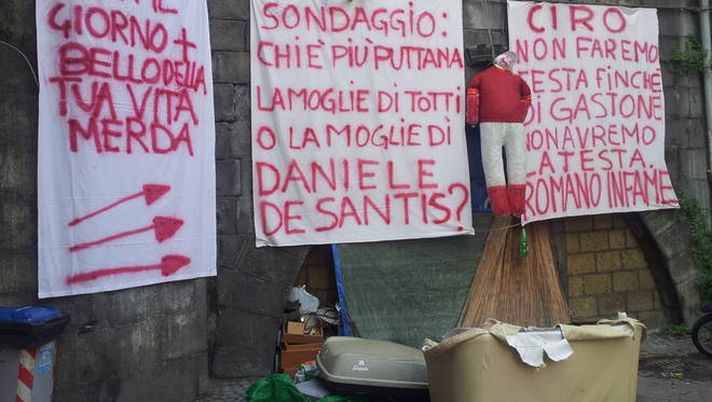 Dopo la morte di Esposito, scomparso questa mattina, sono apparsi striscioni a Napoli contro De Santis e i romanisti.