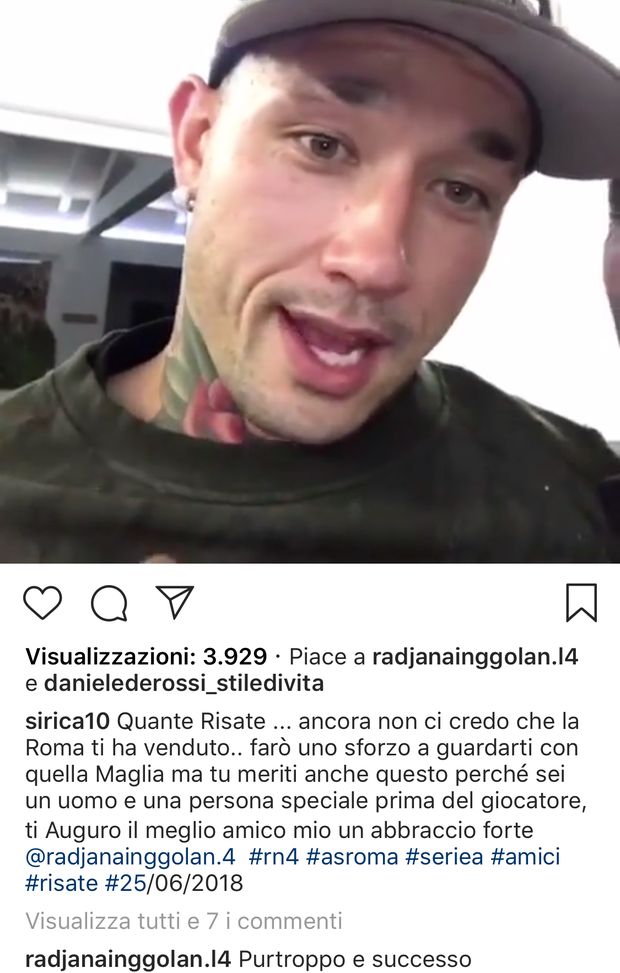 La cessione di Radja Nainggolan all'Inter è ancora una ferita freschissima per i tifosi della Roma, che continuano a manifestare il loro disappunto e a mandare messaggi d'amore sui social al centrocampista belga. A uno dei tanti post su Instagram degli amici conosciuti a Roma, il Ninja ha anche risposto: "Purtroppo è successo". Nainggolan ha cominciato la sua nuova avventura nerazzurra, ma ancora non riesce a smettere di pensare ai colori giallorossi.