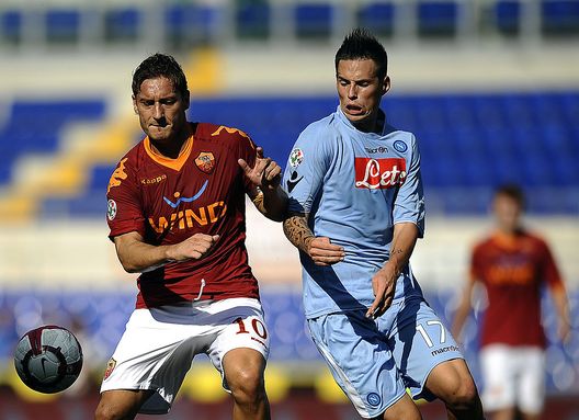 Nella stagione 2007/2008 torna il derby del Sole. Il Napoli, l’anno prima secondo in serie B, riassapora la A e scopre il talento di Marek Hamsik. Lo slovacco, prelevato dal Brescia, incanta mezza Europa e realizza 9 gol sulle note di un giovane Gigi D’Alessio. Gli azzurri terminano il campionato conquistando un’Europa che sa di record, piazzandosi all’ottavo posto con 50 punti. La Roma, però, ha note ben più illustri, quelle di Francesco Totti fresco di scarpa d’oro e paragonabile per originalità a Francesco DeGregori. Il 9 marzo, al San Paolo, finì 2-0 per i giallorossi, con gol di Perrotta e proprio del capitano giallorosso. All’andata, invece, era stato spettacolo: un rocambolesco 4-4 in un Olimpico aperto ai soli abbonati. Una partita da spettacolo, che il Prefetto però volle tenere praticamente a porte chiuse. Uno show senza pubblico. Solo ‘in Italia’, come recitava il tormentone estivo di quell'anno cantato da FabriFibra.
