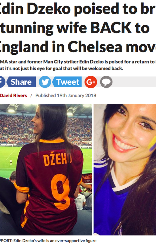 Emerson, Dzeko e Amra. Oltre ai primi due, tra i migliori della scorsa stagione con la maglia della Roma, i tabloid inglesi sperano di riabbracciare presto anche la moglie del bosniaco Amra Silajdzic. In particolare è il "Daily Star" ha rilanciare l'interesse per la compagna di Dzeko, al suo fianco fin dai tempi di Manchester.