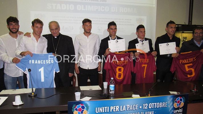 Domani allo stadio Olimpico si terrà la partita “Uniti per la Pace“, un’iniziativa benefica voluta da Papa Francesco per raccogliere fondi in favore delle popolazioni colpite dal terremoto del Centro Italia dello scorso agosto. Alla gara (in programma alle 21.15) parteciperanno anche sette giocatori della Roma: oltre ai confermati Francesco Totti e Diego Perotti, saranno presenti anche Paredes, Fazio, Iturbe, Nainggolan ed El Shaarawy.