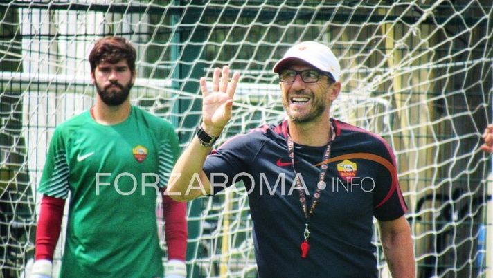 Ore 11.40 - Di Francesco a colloquio con Alisson e Savorani. Florenzi sta terminano la sua seduta di lavoro sul campo B.