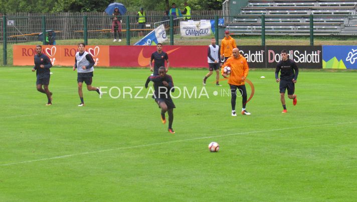 Ore 17.20 - Ancora pioggia in quel di Pinzolo: i giallorossi si allenano in palestra. I due portieri Crisanto e Romagnoli sono gli unici a lavorare sul campo, mentre Alisson svolge gli esercizi insieme agli altri suoi compagni in palestra. Lavoro differenziato per Iturbe, Totti, Nura e Ruediger.