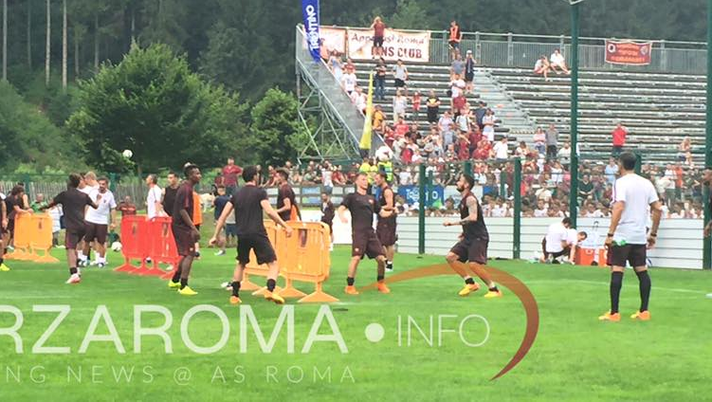 17.32 - I giallorossi iniziano con un riscaldamento palla al piede. Se stamattina i ragazzi si sono concentrati solo sulla parte atletica, oggi pomeriggio il campo è pieno di palloni.