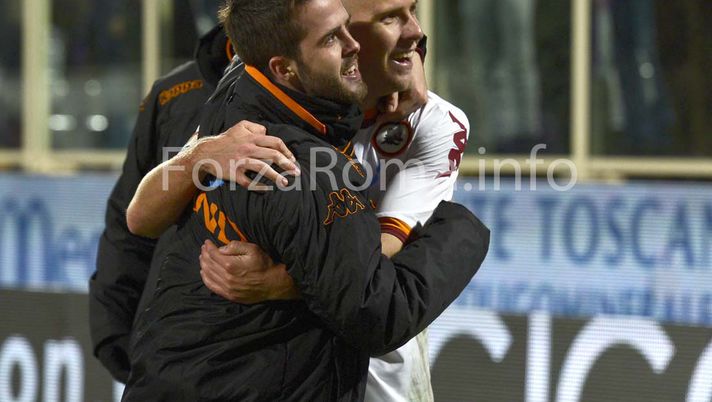Miralem Pjanic?su Facebook festeggia la vittoria della Roma."E due!!?Adesso, niente euforia, da domani pensiamo all'Inter!!!?Buona notte"?ha scritto sulla sua pagina ufficiale?il bosniaco, che sar? costretto a saltare la semifinale di Coppa Italia per squalifica.