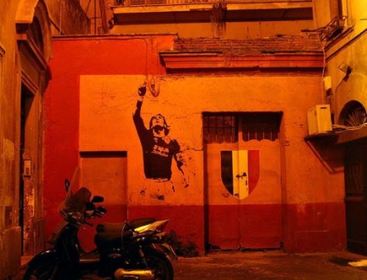 Lo storico murales situato nel Rione Monti che ritraeva Francesco Totti è stato rovinato. L'immagine celebrativa con l'esultanza del capitano della Roma dopo un gol realizzato nel 2001 (anno dello scudetto giallorosso) è stata imbrattata con dello spray che ha coperto la parte superiore del disegno: cancellata la testa, la fascia da capitano sul braccio, lo stemma e lo sponsor sulla maglia. Su Facebook e twitter la tifoseria romanista, che già grida al "sacrilegio", si è comunque attivata per cercare qualcuno che possa restaurare l'opera. Nella foto sotto ecco com'era il murales fino a ieri.