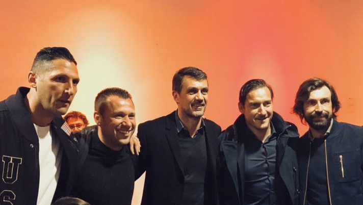 Roma-Barcellona, all’Olimpico Pirlo con Totti, Cassano, Materazzi e Maldini: “Riunione di famiglia” – FOTO