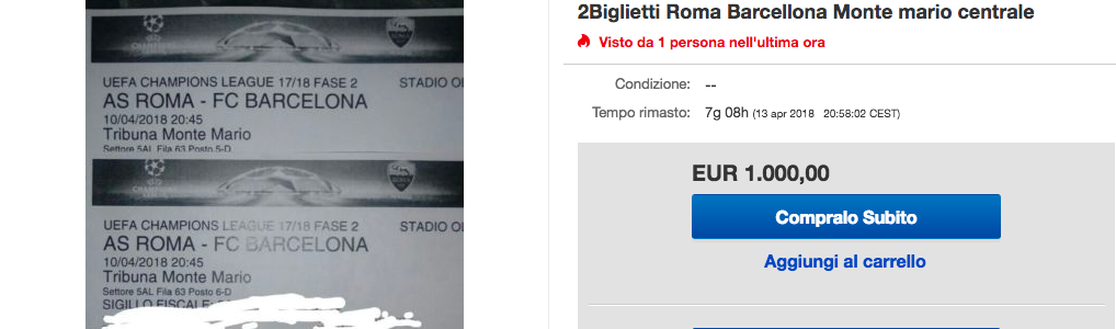 Roma-Barcellona, biglietti rivenduti su Ebay fino a mille euro – FOTO