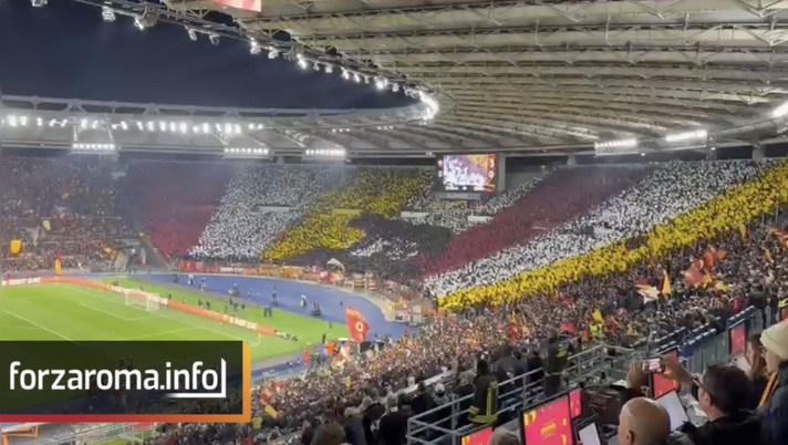 È un Olimpico gremito quello che fa da cornice a Roma-Bologna, ritorno degli ottavi di finale di Europa League. Il pubblico romanista ha risposto presente all'appello per far sì che il fattore casa sia influente e possa dare una mano alla formazione allenata da Gasperini. Come accaduto lo scorso anno contro l'Atheltic Club di Bilbao, tutti i settori dello stadio sono popolati da enormi bandiere giallorosse che sventolano senza sosta. Uno spettacolo incredibile accompagnato, poi, dalla coreografia della Curva Sud: un insieme di bandierine che formano la lupa al centro del settore più caldo dell'Olimpico. Un clima infuocato che rappresenterà per la Roma il 12esimo uomo in campo.