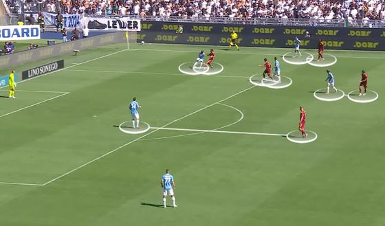 La Roma è ancora prima in Europa per intensità di pressing (7,2 PPDA) ma sembra che le squadre abbiano meno difficoltà a superare l'aggressione alta dei giallorossi lanciando lungo per evitare passaggi rischiosi. In ogni caso, c'è bisogno di sfruttare meglio le occasioni che si creano una volta riconquistato il pallone, per saltare una fase di possesso che fin dalla prima giornata ha faticato a creare palle gol con costanza.