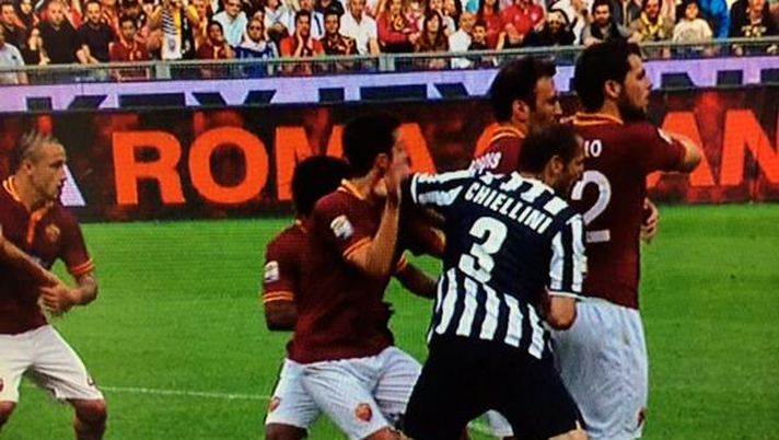 Roma-Juve, gomitata di Chiellini su Pjanic da prova tv