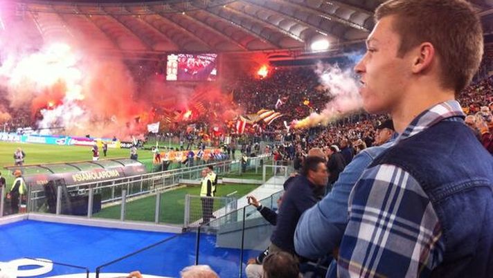 Ci siamo trasferiti a Roma e a scuola mia tutti tifano Roma e la passione me l'hanno trasmessa anche a me. Poi oggi è stata un'esperienza, un'emozione fantastica.