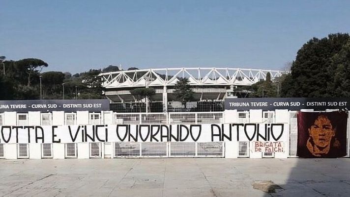 A poche ore da Roma-Milan la Curva Sud si fa sentire. E lo fa con lo striscione del gruppo Brigata De Falchi, lo stesso che una settimana fa prima della partita col Benevento si era schierata contro Pellegrini capitano per via degli auguri social a Ciro Immobile. "Lotta e vinci onorando Antonio", è il testo del messaggio con un chiaro riferimento a De Falchi, il tifoso giallorosso ucciso il 4 giugno 1989 proprio prima di Milan-Roma davanti ai cancelli di San Siro.