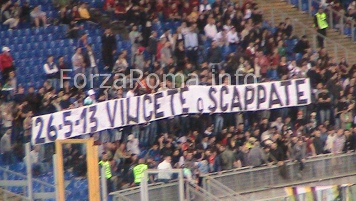 Al 40? del primo tempo di Roma-Napoli in Curva Nord ? apparso lo striscione con su scritto??”26-5-13 Vincete o scappate!”