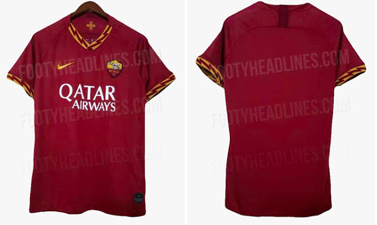 Arrivano le prime immagini relative alla probabile nuova maglia della Roma per la stagione 2019/2020. Come riporta il sito footyheadlines, il classico colore rosso sarà accompagnato da un motivo giallo sul colletto a "v" e sui bordi delle maniche. Spiccano, come sempre, gli sponsor Nike e Qatar Airwas, partners principali del club giallorosso. Ecco le foto: