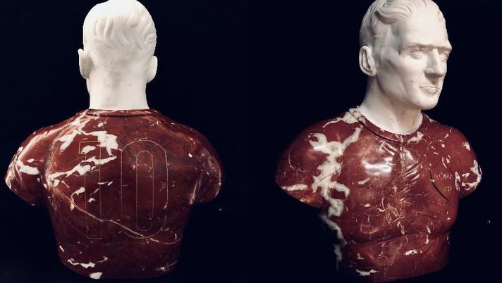 Si intitola "Aeterno", perché a Roma come lui nessuno mai. All'interno di una galleriad'arte della Capitale, ecco spuntare Francesco Totti: un importante bustodi marmo con i tratti dell'aeterno capitano , con una doppia colorazione - bianco statuario e rosso Francia - per riprendere le tinte della maglia (tanto che in rilievo è ben visibile lo scudetto con la scritta Roma 1927), ma anche quelle della passione e dell'amore che la città ha avuto per il suo grande campione e viceversa. La nuova opera dello scultore Stefano Mezzaroma dedicata alla leggenda giallorossa sarà esposta per la prima volta nella Galleria "Plus Arte Puls" situata Viale Mazzini 1 dal 10 al 12 maggio.
