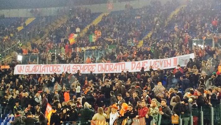 Altro striscione in Distinti Sud e in Tribuna Tevere, quest'ultimo a firma Utr, con scritto "#ForzaKevin". Altro striscione in Tevere, firmato dall'Airc: "Go Kevin go, we're waiting for you"