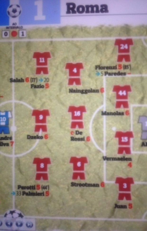 RECORD - Anche il secondo giornale sportivo lusitano non ci va tanto leggero con la Roma, bocciando ben 8 calciatori. In questo caso, però, le pagelle non son le classiche dall’1 al 10, ma i voti vanno dal 1 al 5, con l'1 che equivale a gravemente insufficiente, 2 a insufficiente, 3 a sufficiente, 4 a buono e 5 a ottimo. Ecco il dettaglio: