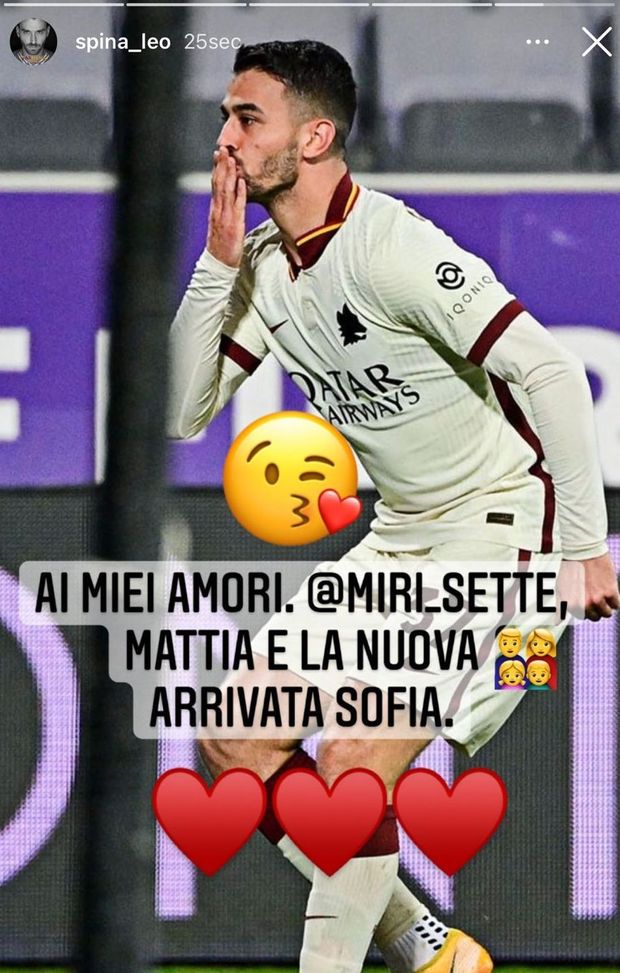 Altra prestazione maiuscola, condita da un meraviglioso gol e da una dedica tutta speciale. La grande gara di Spinazzola contro la Fiorentina ha contribuito ancora di più ad elevare il terzino tra gli esterni più importanti della Serie A. Leonardo ieri ha segnato una splendida rete che ha aiutato la Roma a conquistare 3 punti fondamentali e ha deciso di celebrarla con un'esultanza particolare. Un bacio appassionato che aveva, come destinatari, la compagna Miriam, il figlio Mattia e la piccola secondogenita Sofia, nata appena 4 giorni fa. Il giocatore ha postato la dedica sul proprio profilo Instagram, allegando alla foto il messaggio: "Per i miei amori Miriam, Mattia e la nuova arrivata Sofia".
