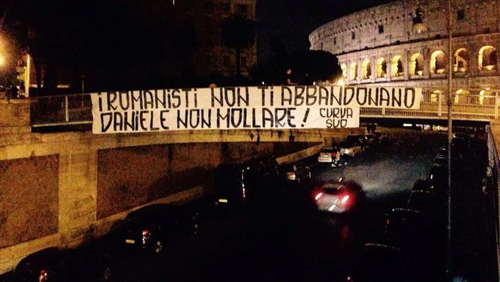 Questo il pensiero della Curva Sud, espresso su uno striscione affisso nei pressi del Colosseo. "I romanisti non ti abbandonano, Daniele non mollare".
