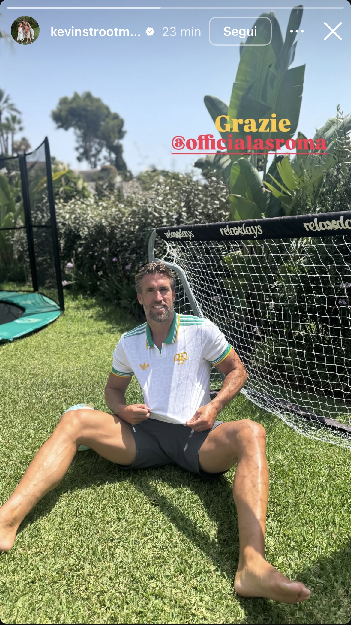 Kevin Strootman non ha resistito al fascino della nuova terza maglia della Roma. L’olandese, colpito dal design, aveva scherzosamente commentato sui social: "Vi mando l’indirizzo?" per farsela recapitare. La società giallorossa ha colto la palla al balzo e gli ha inviato la divisa, che l’ex centrocampista ha mostrato sui social, pubblicando una foto su Instagram con una sola parola: «Pronto». Nelle sue stories l'olandese ha ringraziato il club giallorosso per il regalo.