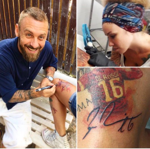 Un supporters della Roma, dopo essersi fatto tatuare la maglia del numero 16 di Ostia sulla gamba, ha deciso poi di farselo firmare e trasformare la sigla in un altro tattoo