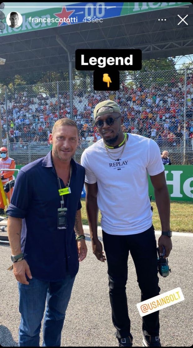 Totti a Monza assiste al GP d’Italia e la foto con Bolt è d’obbligo – VIDEO