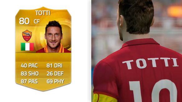 Nel 2015 Totti torna ad una valutazione generale di 80 punti: la velocità si riabbassa (40), ma la sparizione del valore 'testa' a favore della forza fisica (69), con l'aggiunta delle solite qualità tecniche, gli permette ancora oggi di essere tra i migliori.