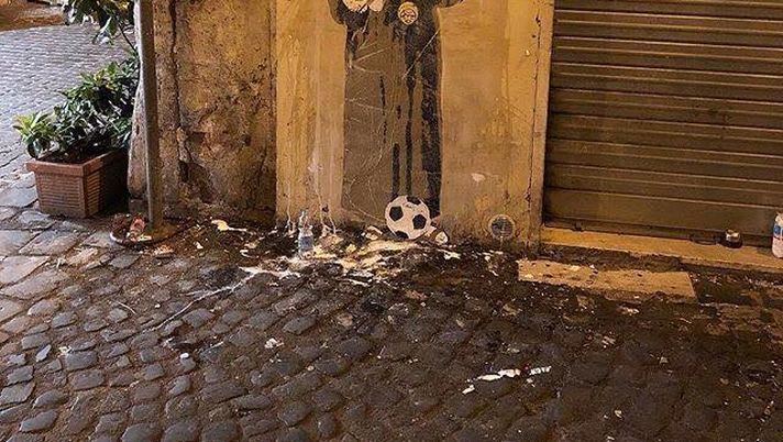San Francesco Totti non c'è più. E' durato solo un giorno il murale che rappresentava Totti nei panni di un monaco, apparso ieri a via Savelli, tra Campo de' Fiori e Piazza Navona. L'opera, creata dallo street artist TVBOY, è stata cancellata e tutto quello che è rimasto sono solo i contorni della raffigurazione. Lo stesso autore ieri aveva commentato soddisfatto: "Dopo quella di Messi ecco anche la santificazione di una leggenda del calcio come Francesco Totti, per l’occasione diventato San Francesco da Roma".