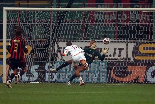 La più divertente. Un anno dopo il pallonetto a Julio Cesar, Totti è di nuovo a San Siro, stavolta contro il Milan. In tribuna c’è Ilary, in dolce attesa di Chanel (ma ancora non si sa, è novembre 2006 e la secondogenita nasce a maggio 2007) e il marito le regala una doppietta indimenticabile. Anche perché, dirà Francesco alla fine, “erano anni che volevamo vincere così qui”. La Roma si impone 2-1, passa in vantaggio con il capitano (girata da centro area), il Milan pareggia con Brocchi, alla fine Totti chiude i conti - di testa - al termine di una delle azioni più belle della Roma di Spalletti, iniziata con la rabona di Aquilani, terminata da Francesco su assist di uno scatenato Mancini.