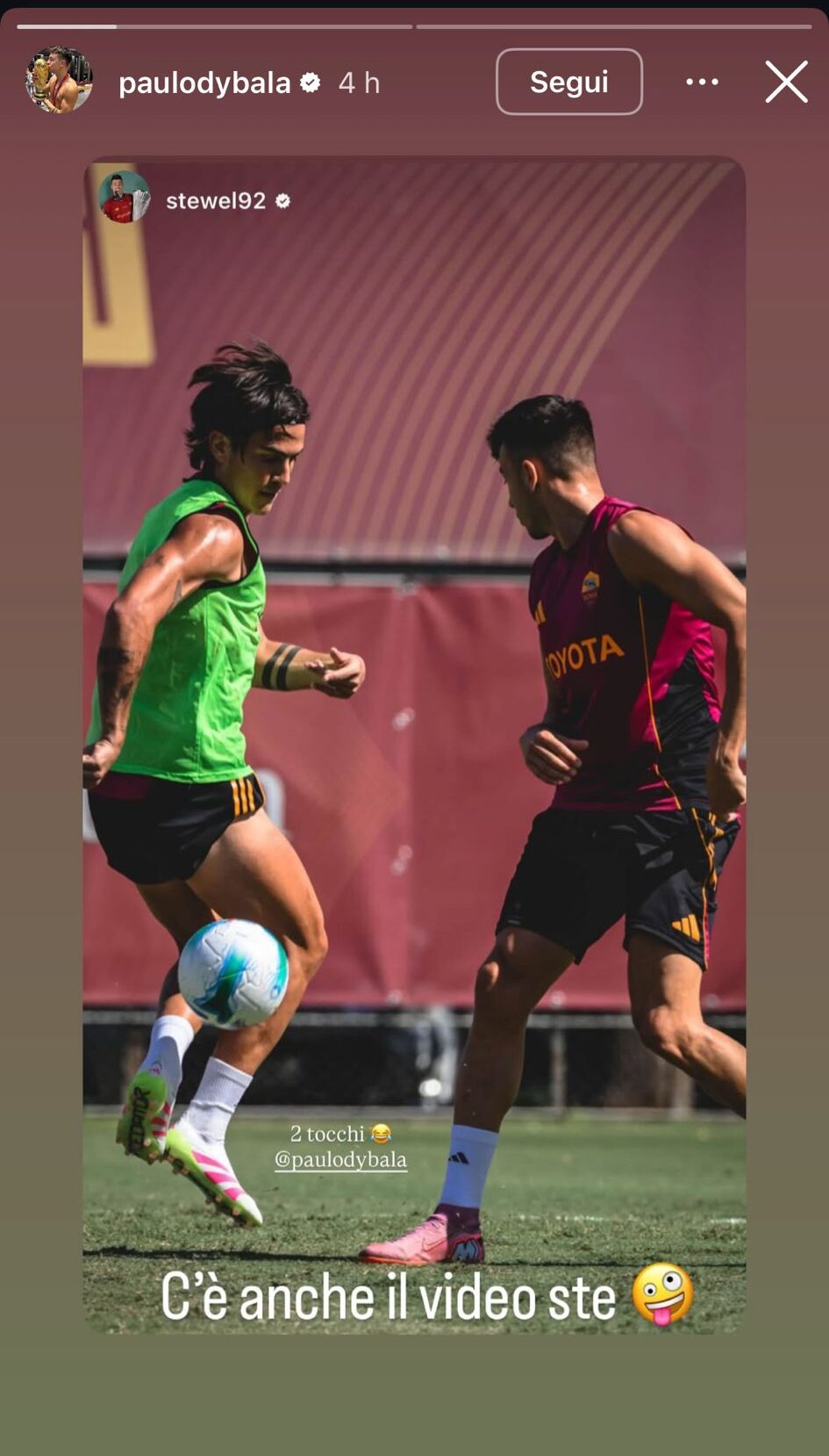 Dopo la seconda vittoria stagionale arrivata in trasferta contro il Pisa, molti giallorossi sono partiti per aggregarsi alle proprie nazionali in vista delle qualificazioni ai prossimi Mondiali. Ieri i giocatori rimasti a Trigoria sono tornati in campo per lavorare durante la sosta e oggi il club ha pubblicato il video della sessione mattutina agli ordini di Gian Piero Gasperini: Paulo Dybala, dopo la grande prestazione sul campo del Pisa, ha incantato anche in allenamento con esterni imprendibili e colpi di tacco all'incrocio. Proprio su questa giocata incredibile, il siparietto con El Shaarawy che lo ha bacchettato: "Hai fatto due tocchi". Ma Paulo non ci sta: "C'è anche il video Ste!" Anche Lorenzo Pellegrini sta continuando ad allenarsi in gruppo e domani mattina ci sarà l'amichevole a porte chiuse contro il Roma City.