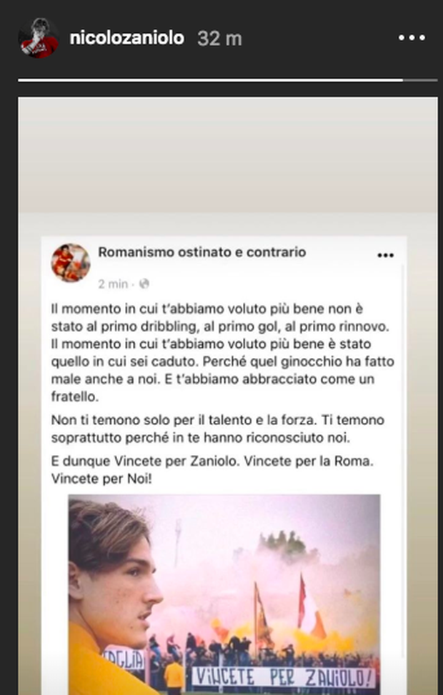 Ore 15.00 - Nicolò Zaniolo ha postato una foto su Instagram ringraziando i suoi tifosi per lo striscione: "Magici" il commento.